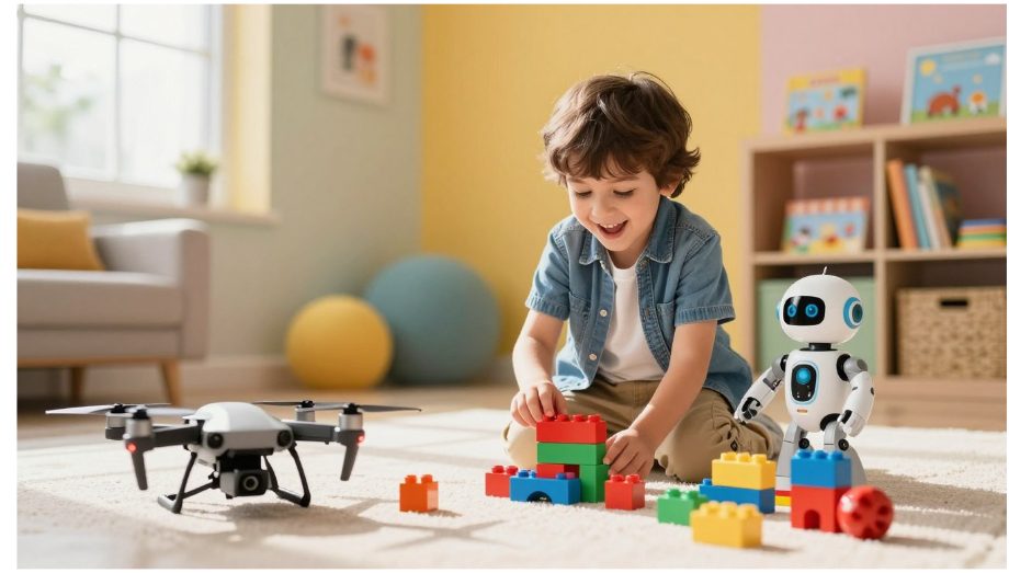 A vibrant and engaging scene showcasing the best toys for toddlers in 2026, focused on colorful, educational toys. In the foreground, a variety of plush animals, building blocks, and interactive learning toys are neatly arranged on a soft play mat. The middle ground features a cheerful toddler, dressed in a comfy casual outfit, exploring and playing with a stack of bright, oversized blocks. In the background, a cozy, well-lit playroom filled with shelves of neatly organized toys and a large window letting in warm, natural light. The atmosphere is joyful and playful, inviting a sense of wonder and discovery. The image is captured with a soft focus lens, emphasizing the toys and child while adding a slightly blurred effect to the surroundings for a dreamy feel.